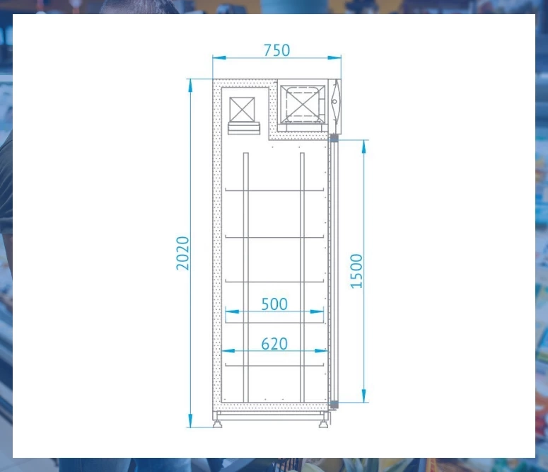 Producent zadbał o wytrzymałość całej konstrukcji, dlatego wykorzystał w produkcji blachę aluminiową i stal nierdzewną. Całość konstrukcji została pomalowana proszkowo.  Komora przechowalnicza o pojemności 1154 l jest podzielona na dwie części, do każdej można się dostać otwierając tylko jedno skrzydło drzwi, bez naruszania klimatu drugiej części. Razem do wykorzystania jest aż 10 półek, co pozwala na jednoczesne chłodzenie wielu produktów. Codzienną obsługę urządzenia ułatwiają takie elementy wyposażenia jak system samoczynnego odszraniania oraz elektroniczny termostat z cyfrowym wyświetlaczem. Ekologiczny czynnik chłodniczy R290.