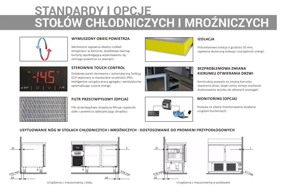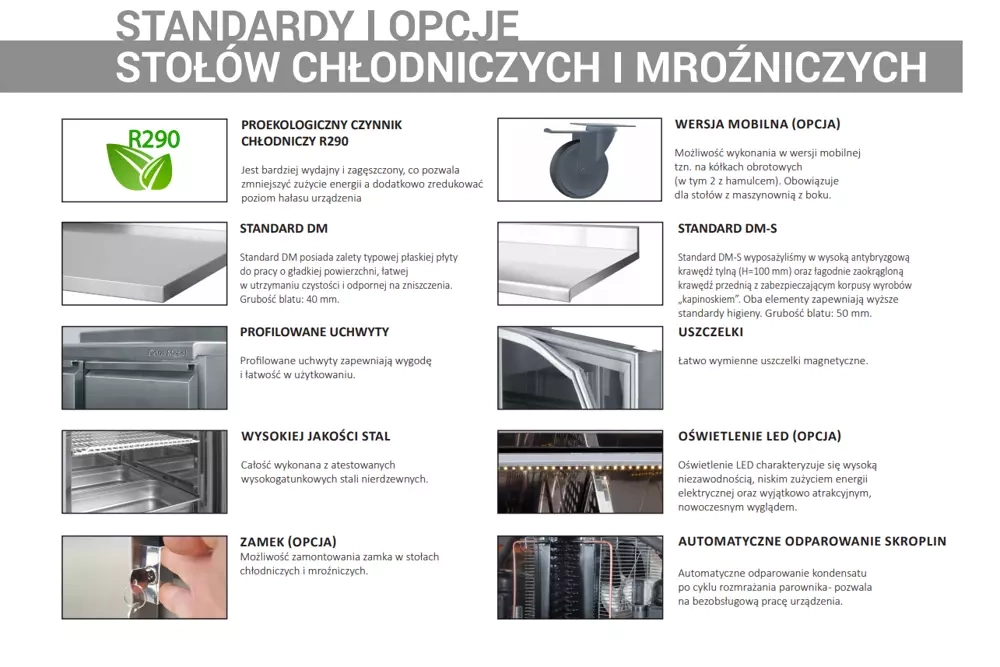 Stół chłodniczy DM - 94003.0 3 - komorowy DORA METAL pełni rolę podręcznego magazynu. Pozwala na szybki dostęp do zapasów schłodzonych lub zamrożonych produktów. Dodatkowym atutem stołu chłodniczego jest blat, który spełnia funkcję powierzchni roboczej. Stół chłodniczy DM - 94003 wykonany z wysokogatunkowej stali nierdzewnej. O głębokości 700 mm przystosowane są dla pojemników GN 1/1, a dla głębokości 600 mm 2/3 GN. Każde urządzenie chłodnicze jest indywidualnie testowane po wyprodukowaniu, dzięki czemu użytkownik może mieć pewność, że spełnia najwyższe standardy funkcjonalność.