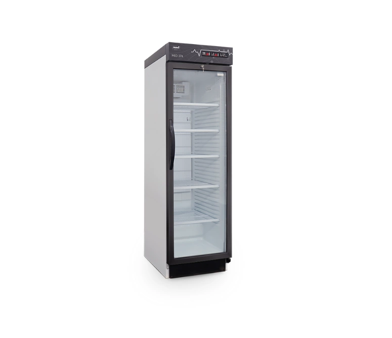 Medyczna szafa chłodnicza SCH 374 INWERTER z przeznaczeniem do przechowywania artykułów medycznych i farmaceutycznych w odpowiedniej temperaturze. Umożliwia efektowną prezentację produktów oraz łatwy dostęp do wystawionego asortymentu. Szerokość urządzenia wynosi tylko 595 mm, a pojemność użytkowa 345 l.