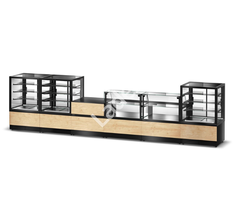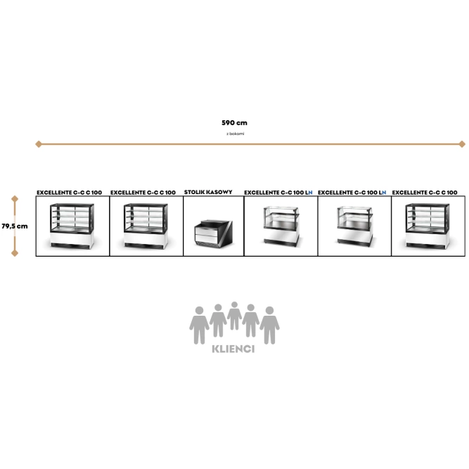 Zestaw cukierniczo-piekarniczy 3 x Excellente C 100 + 2 x C LN 100 + lada kasowa to idealne połączenie funkcjonalności, estetyki i wydajności, które pozwala na skuteczną prezentację szerokiej gamy wypieków, ciast i pieczywa. Dzięki trzem witrynom chłodniczym, dwóm neutralnym ladom ekspozycyjnym oraz funkcjonalnej ladzie kasowej zyskujesz kompleksowe wyposażenie (590 cm przestrzeni na długość), które podnosi standard obsługi klienta i optymalizuje układ lokalu.