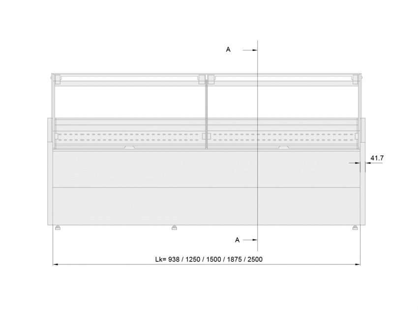 Ten model posiada wymiary: długość 195,9 cm, szerokość 109,5 cm, głębokość ekspozycji 86 cm. Takie rozmiary pozwalają na efektywne wykorzystanie przestrzeni ekspozycyjnej w różnych konfiguracjach handlowych, co przekłada się na lepszą organizację i atrakcyjność oferty produktowej.